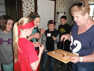 As volunteers from the museum, we took charge of the farmhouse. In the kitchen, the fifth-graders learned how the Wiegerts raised and preserved their food. The kids nibbled on samples of fresh, dried and baked goods of the time. In the parlor, they viewed some odd and interesting artifacts of the time and tried their best to decide how they were used.